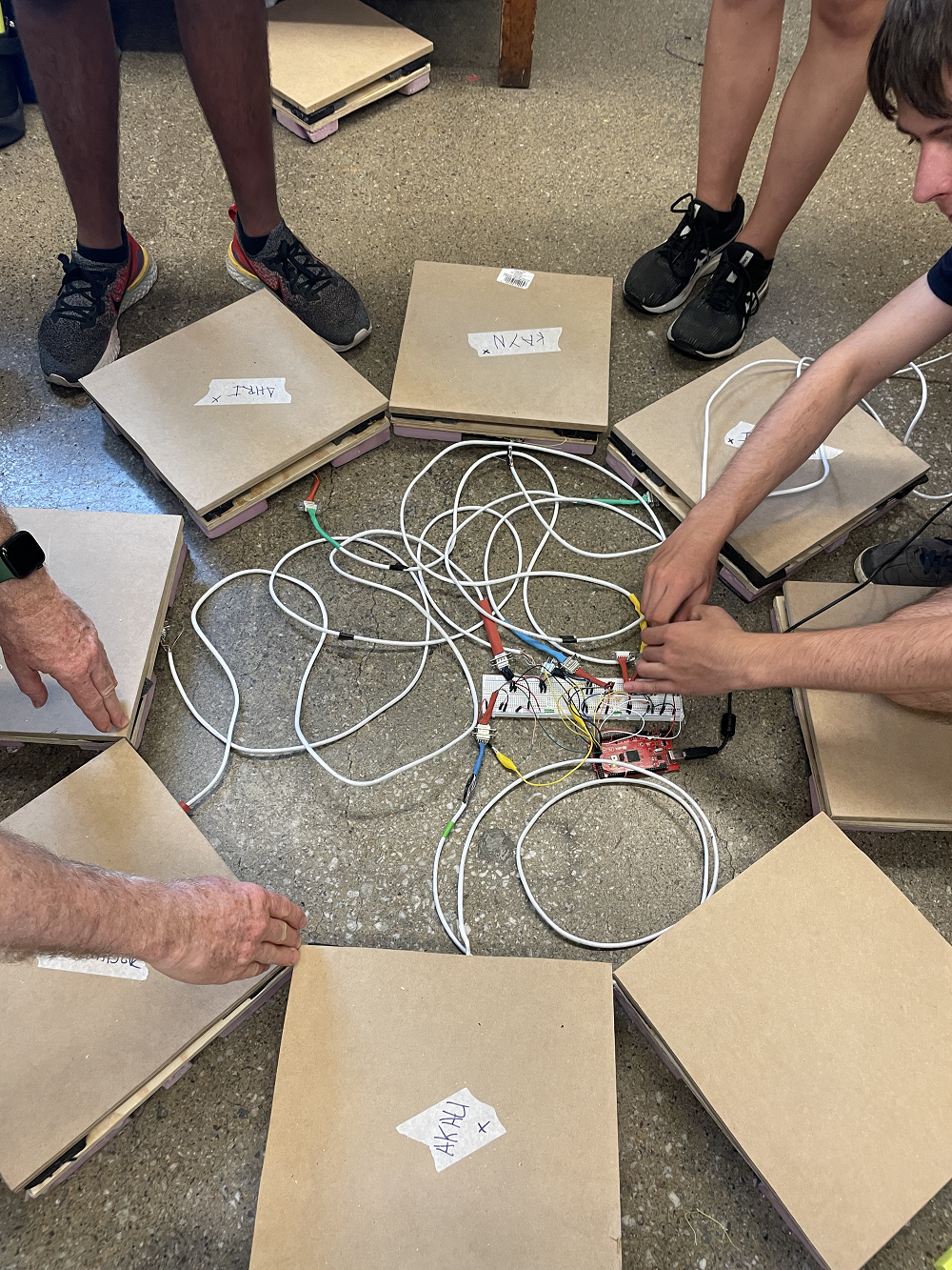 The project that we built for that EDW was a foot piano, that had nine notes (A, B, C, D, E, F, F#, G) and that could be arranged in any way to play any song we wanted.